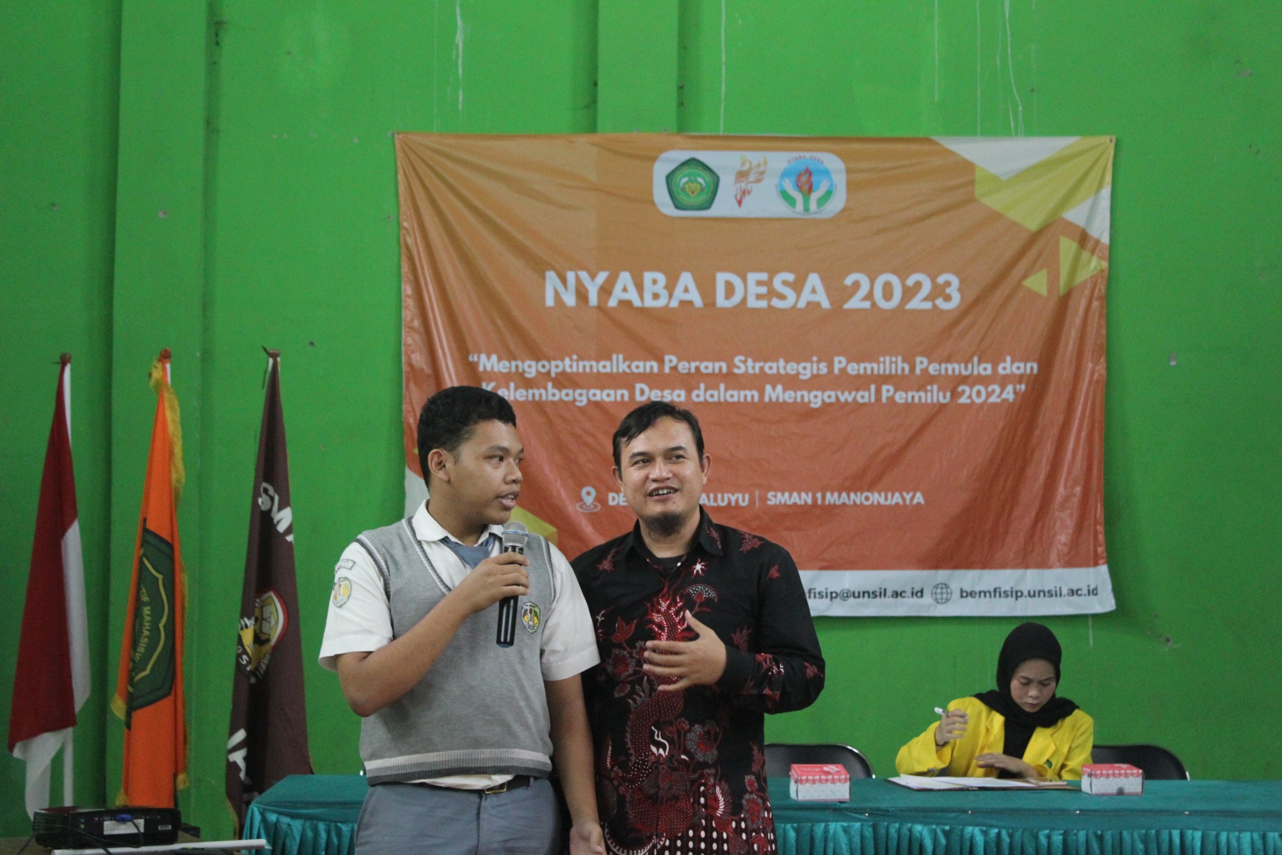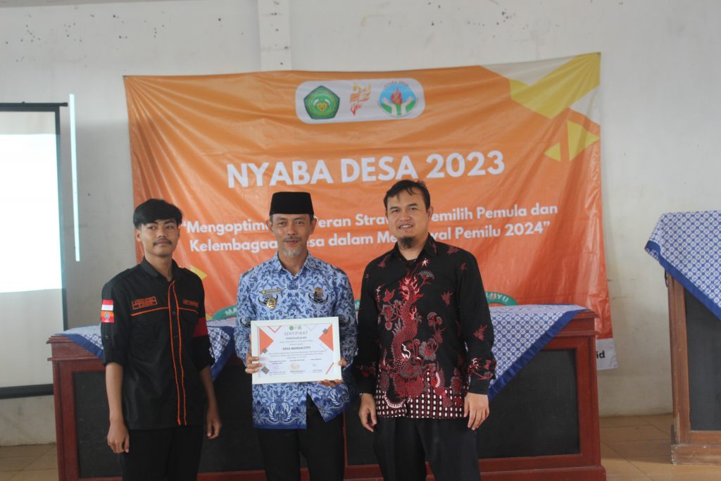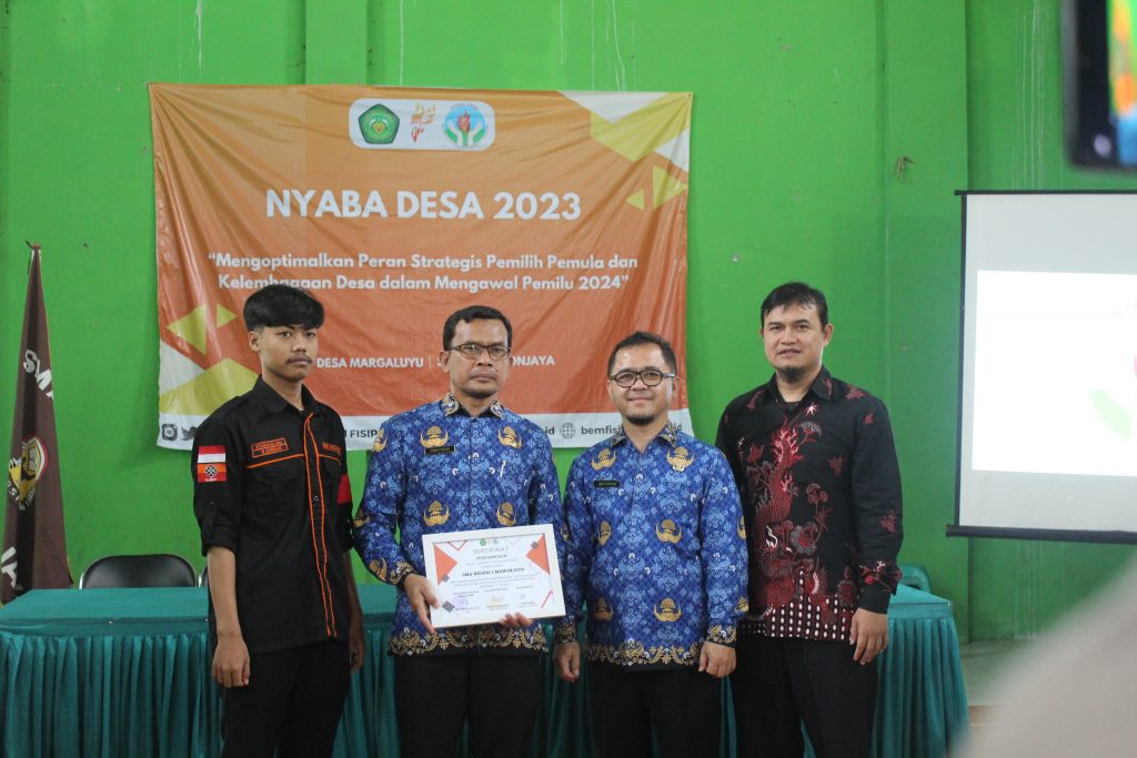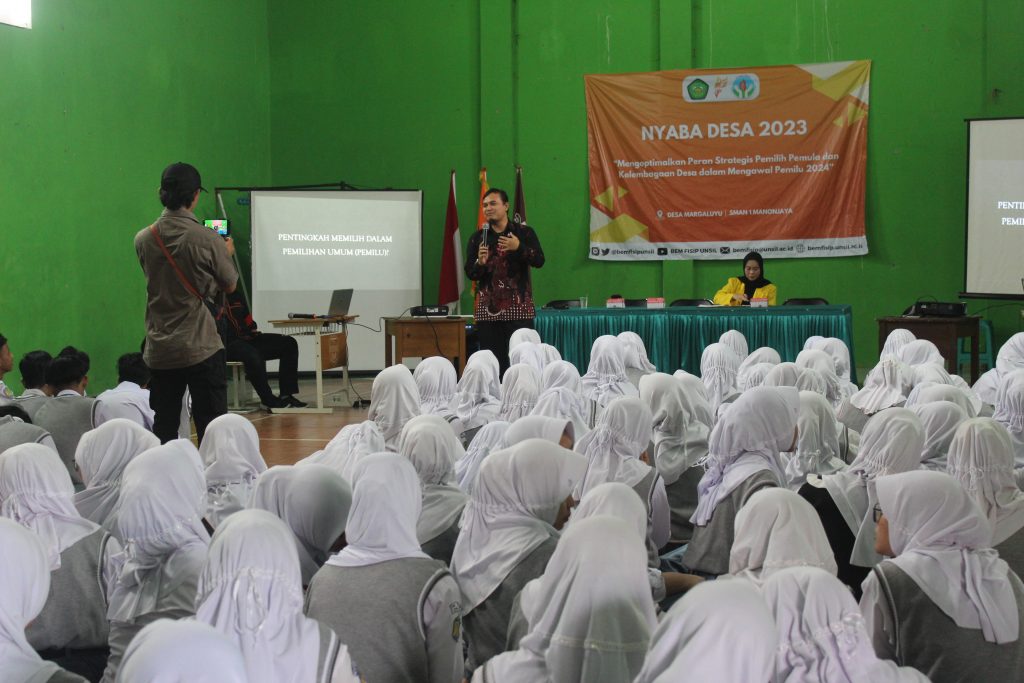 untuk peduli dan berkontribusi nyata dalam pembangunan nasional. Kegiatan ini mengangkat tema “Mengoptimalkan Peran Strategis Pemilih Pemula dan Kelembagaan Desa Dalam Mengawal Pemilu 2024”. Oleh karena itu pada kesempatan kali ini kami merencanakan untuk mengadakan suatu pengabdian masyarakat dengan tujuan siswa SMAN 1 Manonjaya dan Perangkat Desa Margaluyu.